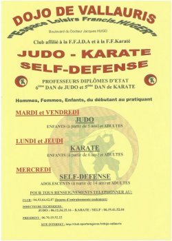 DATE => Inscription à partir du Mardi 4 septembre 2012 REPRISE DES COURS => KARATE = Le 10 Septembre JUDO = Le 11 Septembre SELF-DEFENSE (Jujitstu) = Le 12 Septembre Deux cours d’essai GRATUIT pour les nouveaux adhérents IMPORTANT A FOURNIR OBLIGATOIREMENT un certificat médical avant de monter sur le tapis: Pour les aciens adhérents: • Un certificat d’aptitude à la pratique du judo – jujitsu ou du karaté en compétition pour la saison en cours + une photo d’identité si nécessaire. • Pour ceux possédant un passeport de la F.F.Judo ou de la FF Karaté, faire tamponner, signer et faire spécifier par leur médecin « apte à la compétition» MERCI DE FAIRE CES DEMARCHES ADMINISTRATIVES AVANT LA REPRISE DES COURS