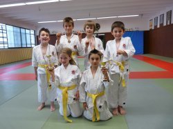 Samedi 2 juin, les judokas du DOJO de VALLAURIS étaient invités à participer au tournoi de Grasse. Pour certains de nos petits judokas, c’était leur première compétition, mais nos deux filles se sont mises à l’honneur en combattant comme des « lionnes ». notre pré-poussine (Ines CARERA) et notre minime (Marie-astrid DURY) ont eu le courage de combattre qu’avec des garçons dans leur catégorie. Marie-Astrid a donné bien du mal à ses adversaires par contre, un parcours sans faute pour Inés qui les a éliminés un par un. Nos garçons se sont bien comportés et ont disputé avec acharnement tout leurs combats Félicitation à tous !!! sur la photo nos pré-poussins: debout (de gauche à droite): Julien, Tao, Mattéo, Tino (à genoux): Inés et Valentin