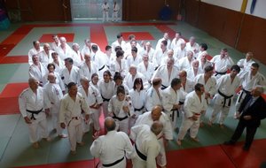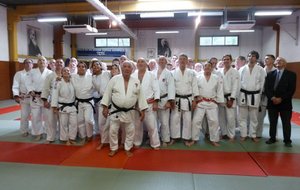 Selon la tradition, la Journée du collège des ceintures noires « journée Bernard MIDAN » s’est déroulé au Dojo de Sophia-Antipolis le 11 novembre. Trois de nos sociétaires de la section judo ont participé (Alain CAMERA, Joël SCHWARTZ et Patrick ORLANDO) Cette journée a réuni de nombreux hauts gradés de notre régions. Après les allocutions et la présentation des invités, un entrainement en commun fut dirigé par monsieur Alain BINI, suivi par la remise des récompenses et des diplômes pour les promus. La 10ème Coupe Kata Marc Martin a constitué l’un des temps fort de cette manifestation. La 6ème coupe yaku soky geiko récompensant le « beau judo » était également au programme. Un mondo termina cette assemblée de ceintures noires et tout ce beau monde alla déjeuner dans un restaurant à Valbonne.
