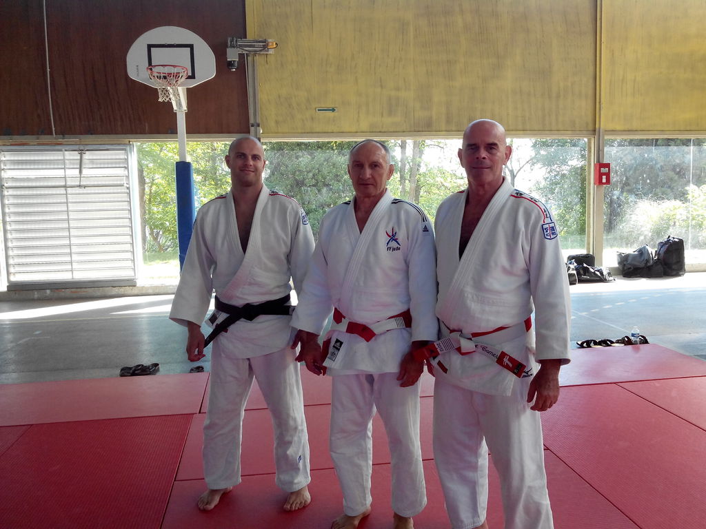 Sur la photo, de gauche à droite Romain Amalberti (président de la section Judo du Dojo de Vallauris), Monsieur Yves Delvingt (7ème dan, médaillé au championnat d’Europe et du Monde entre 1975 et 1979) et Alain Camera (6ème dan, professeur de Judo du Dojo de Vallauris).