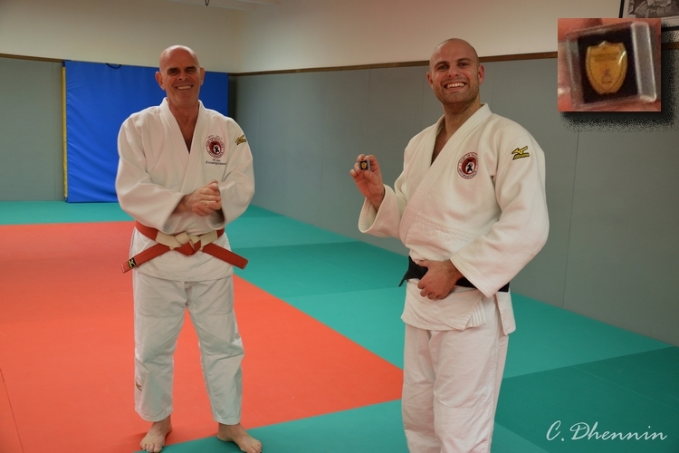 C'est dans un grand fou rire, que Vendredi 21 décembre, le président de la section Judo, Romain Amalberti 3ieme DAN, s'est vu remettre le pin's présidentiel, gracieusement offert par la fédération française de judo, par les mains de notre directeur technique, Alain Camera 6ieme DAN.