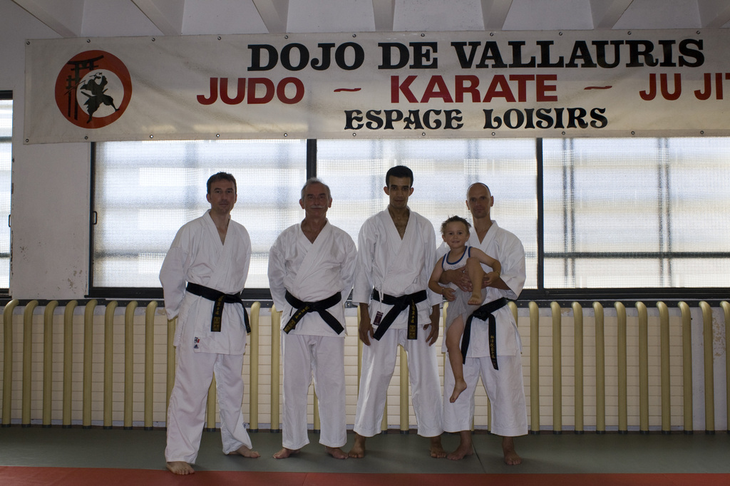 Un nouvel atelier grade organisé au Dojo de Vallauris ce dimanche matin. C'est à 9h00 qu'avait donné rendez-vous Benjamin LACHAMBRE 4ème dan, aux adhérents désireux d'effectuer une préparation spécifique pour leur futur passage de grade. C'est donc en comité restreint que nos karatékas ont pû perfectionner leurs katas. Un grand merci à Benjamin qui démontre ici sa forte implication dans la progression de ses élèves (De doite à gauche sur la photo: Benjamin LACHAMBRE, Mathias LACHAMBRE, Moez SAIDI, Claude HARI et Guillaume BERTRAMO.