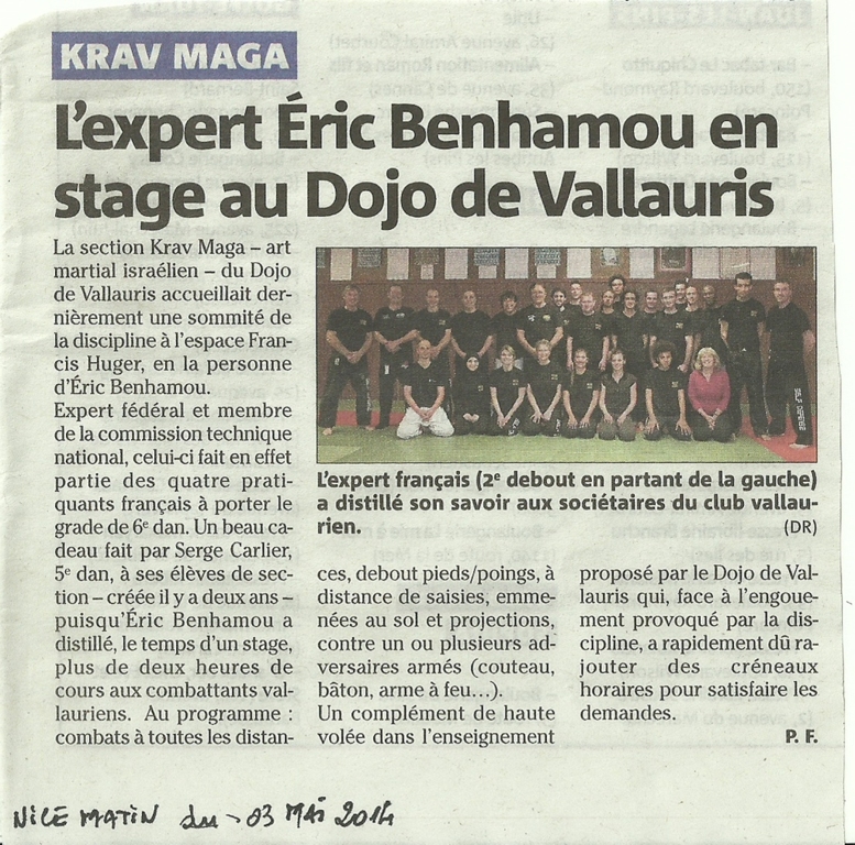 KRAV MAGA : JOURNAL NICE MATIN : "Stage Eric BENHAMOU"