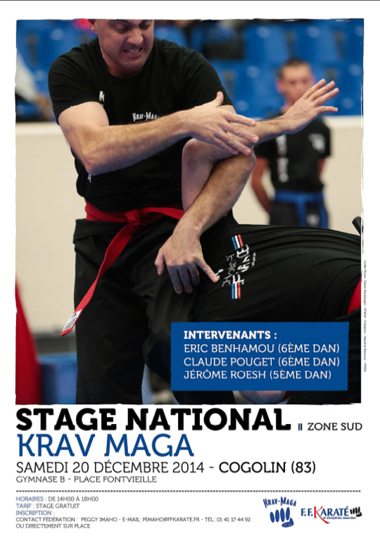 Stage National zone sud Krav Maga à COGOLIN le 20 Décembre avec Eric BENHAMOU 6e Dan, Claude POUGET 6e Dan et Jerome ROESH 5e Dan ...allez le Dojo, on y va en masse....
