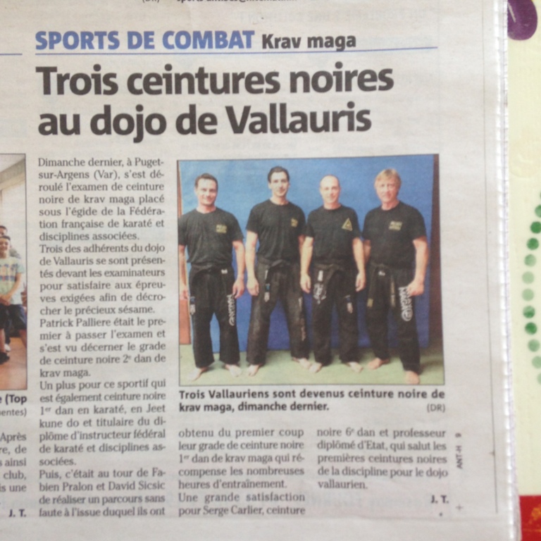 La section SELF DÉFENSE - KRAV MAGA mise à l'honneur dans la presse suite à la réussite à l'examen de ceinture noire 1er et 2e Dan de trois de nos adhérents...