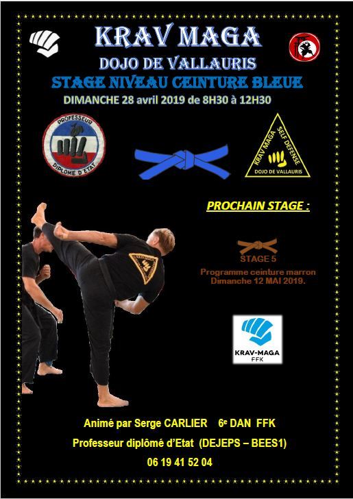 KRAV MAGA STAGE CEINTURE BLEUE DIMANCHE 28 AVRIL 2019 Ouvert a tous les adhérents de la section Krav Maga du Dojo de Vallauris. Venez nombreux quelque soit votre niveau...
